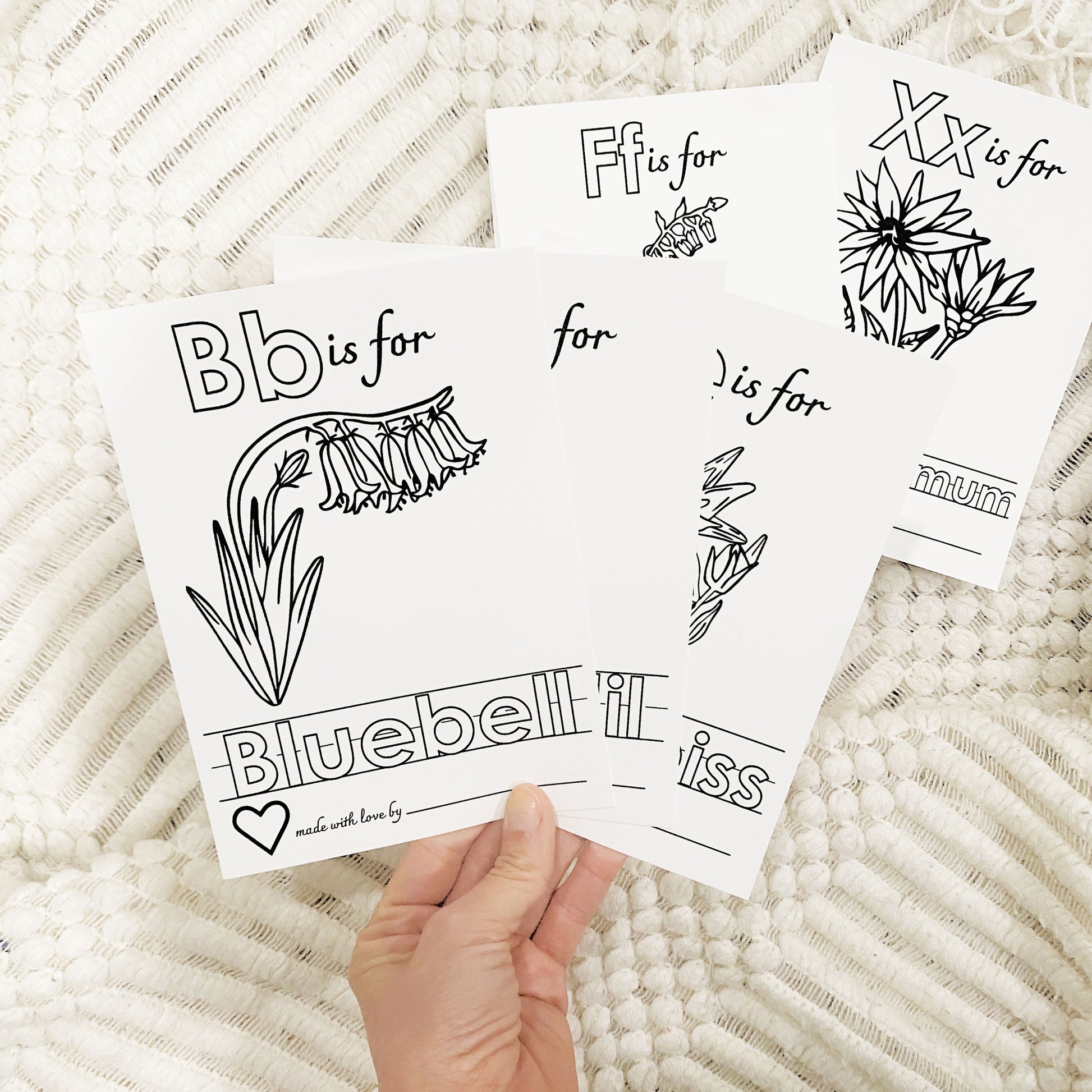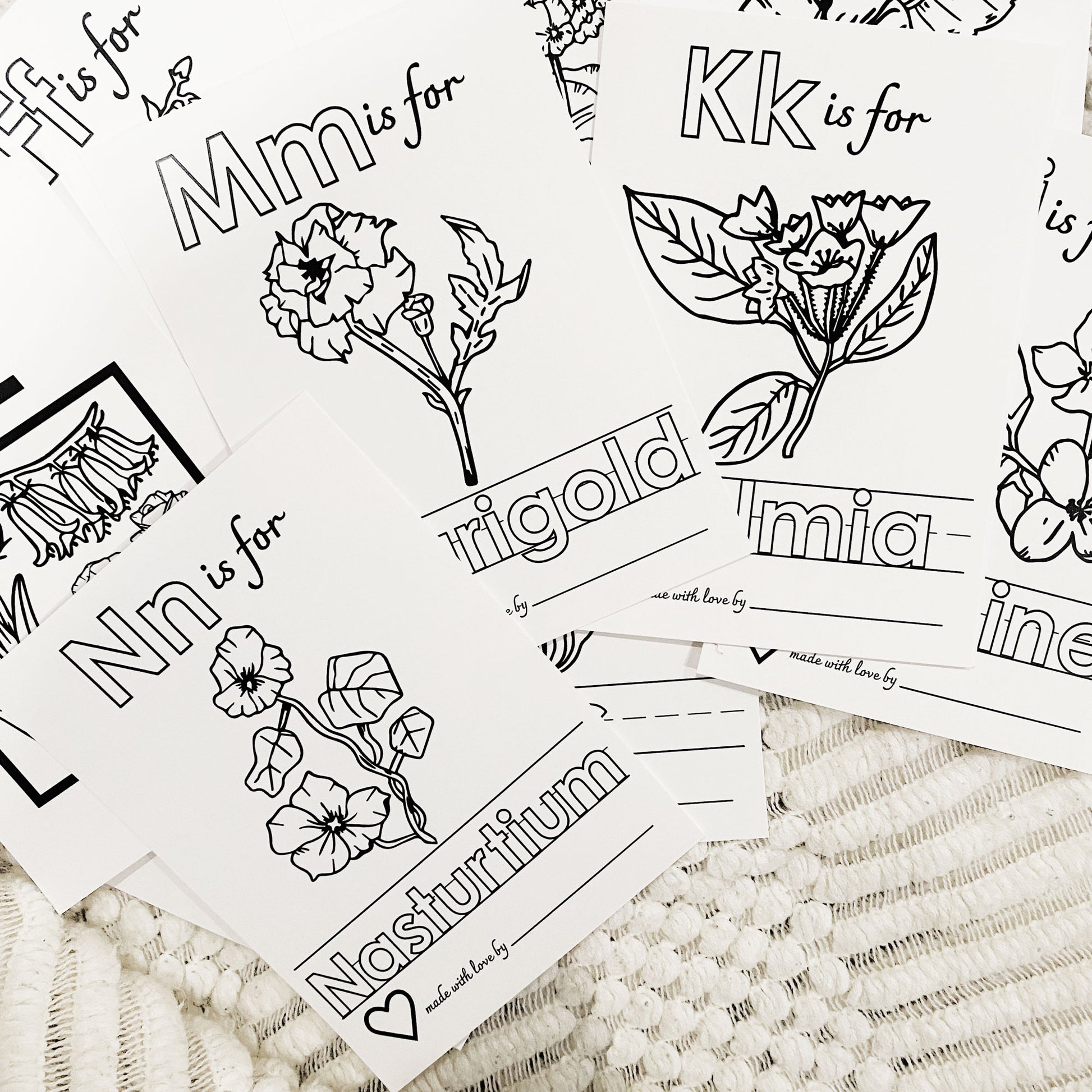 This adorable Alphabet Coloring book is the perfect baby shower activity for guests, and will make the sweetest gift for the mother to be! Simply print the pages at home, and guests can color a page and sign their name. Once baby is born they will have a sweet keepsake to learn their ABCs. All illustrations were hand drawn for a one of kind gift - More details below!