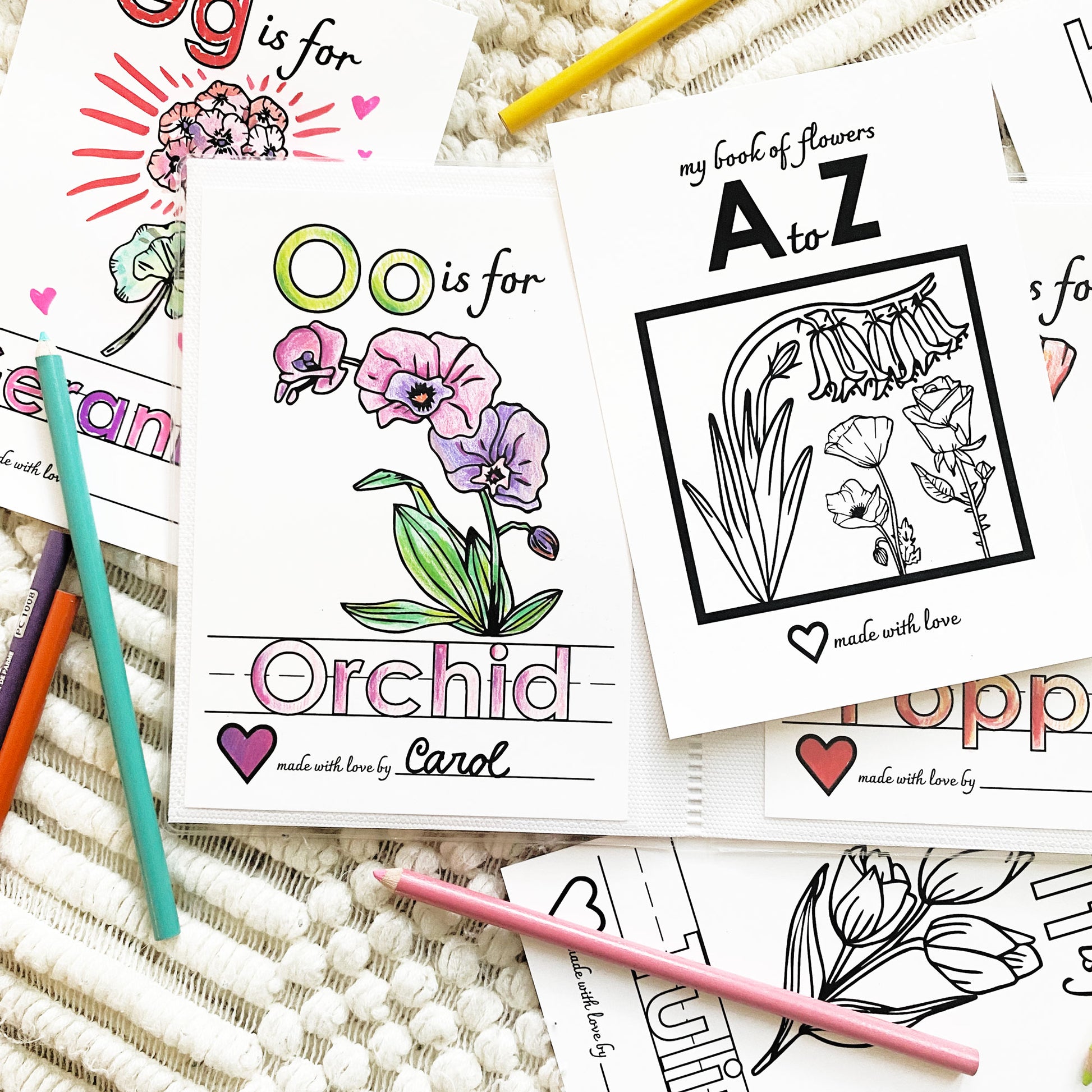 Aster, Bluebell, Cornflower, Daffodil, Edelweiss, Foxglove, Geranium, Hibiscus, Iris, Jasmine, Kalmia, Lily, Marigold, Nasturtium, Orchid, Poppy, Queen Anne's Lace, Rose, Sunflower, Tulip, Ursinia, Viola, Waterlily, Xeranthemum, Yarrow and Zinnia