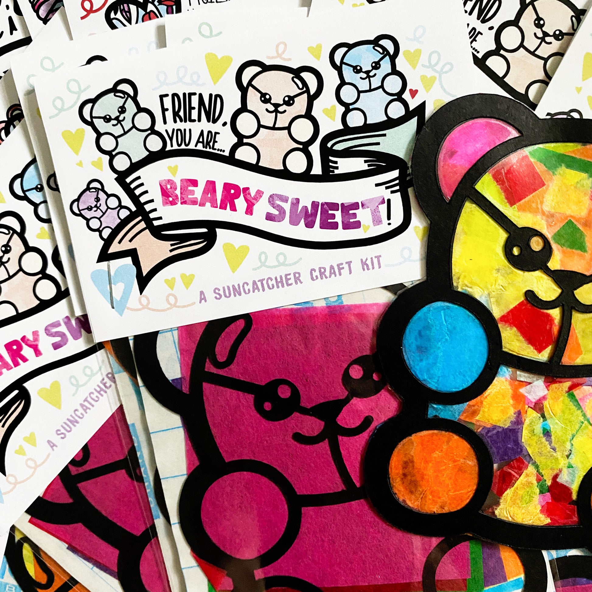 Give out a one-of-a-kind Gummi Bear Suncatcher craft Valentine's card at your preschool or elementary classroom exchange. These unique Valentine's cards include a suncatcher, tissue paper, and a decorative message that reads "Friend, You are Beary Sweet". Recipient will create a piece of art to hang on their window at home. The recipient will need a glue stick or contact paper to complete at home - directions included.