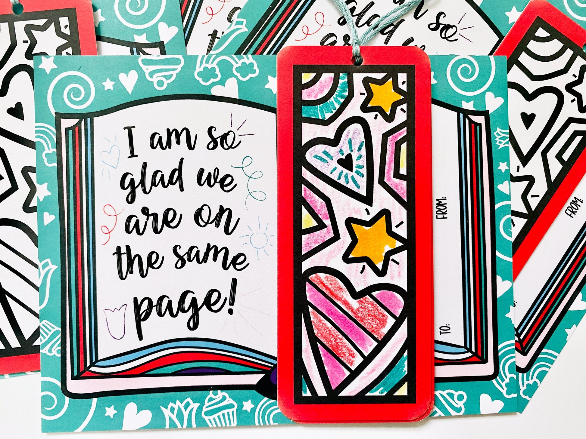 Promote reading this Valentine's! These valentine's cards come with a bookmark that kiddos can color and use with their favorite book. Choose from assembled or unassembled in the drop-down. There is a place to write "to" and "from", or leave that area blank.