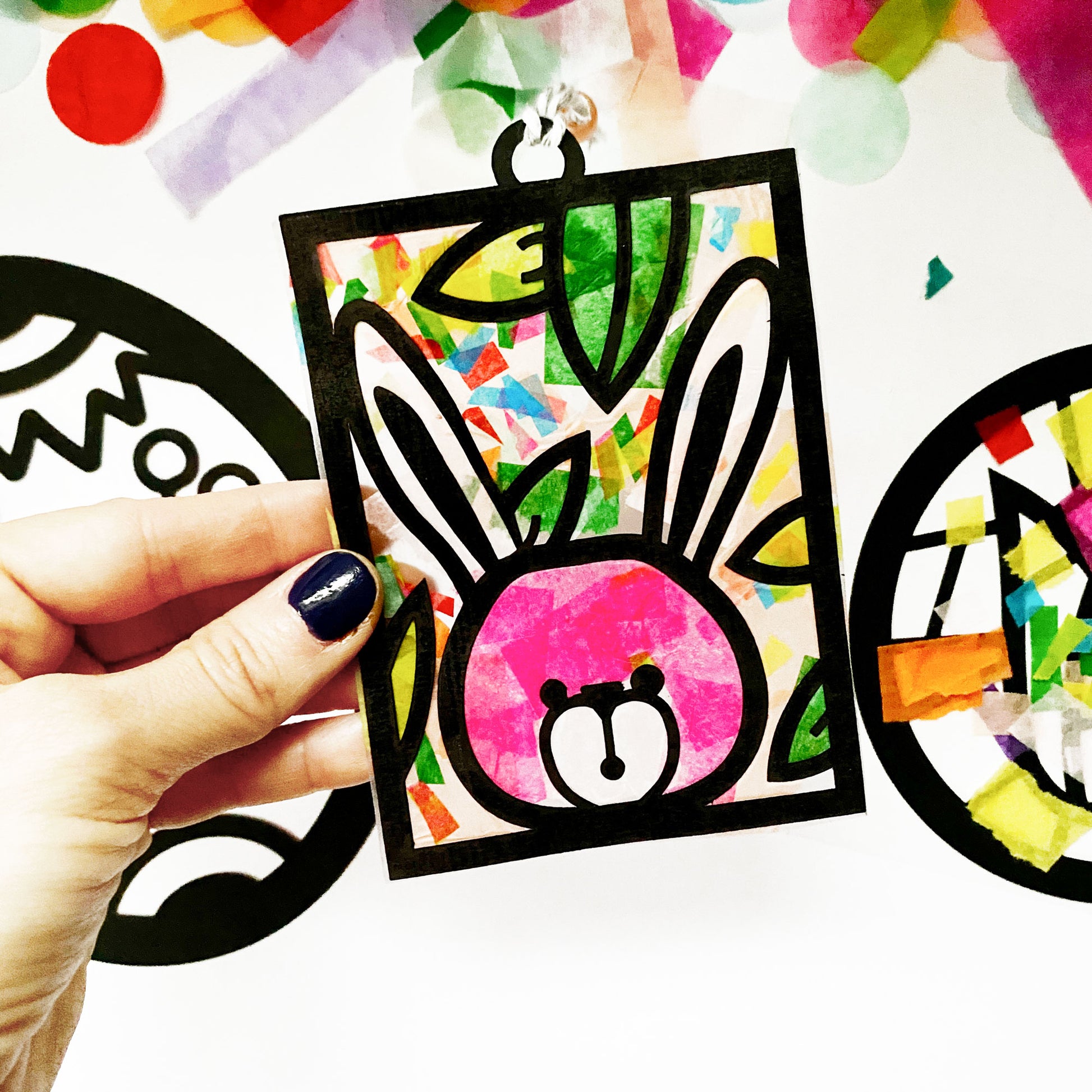 Set up an easy craft for your spring or Easter party! Our suncatcher kits are simple tissue paper activities that are perfect for toddlers through adults. The best part...no glue and no paint, which makes clean up a breeze. The finished product is a stunning piece of paper-stained glass art children can hang on their windows! Cut outs are approximately 5.5 inches wide or 7.5 inches tall, depending on the shape. .