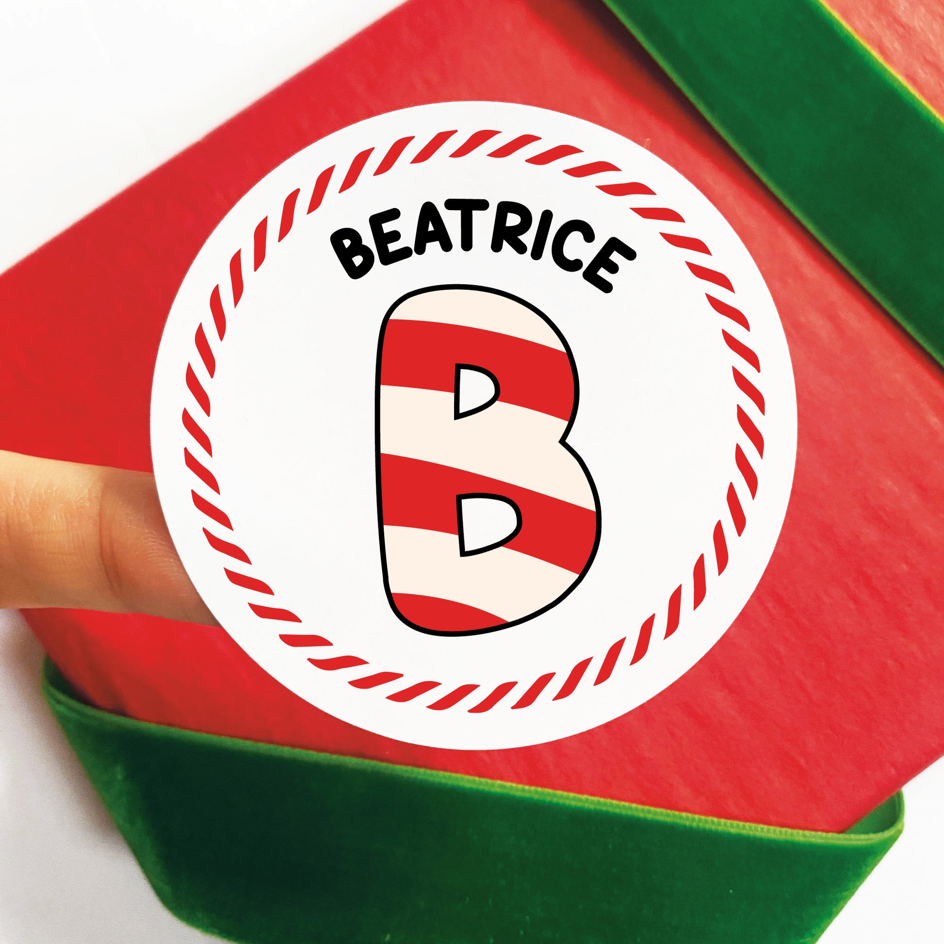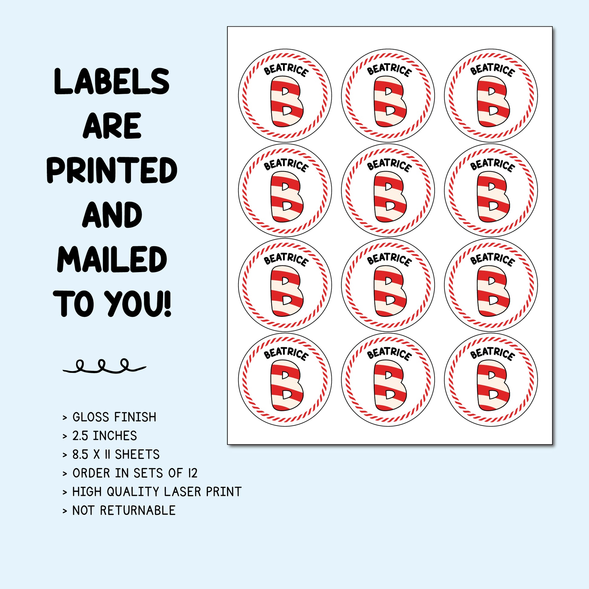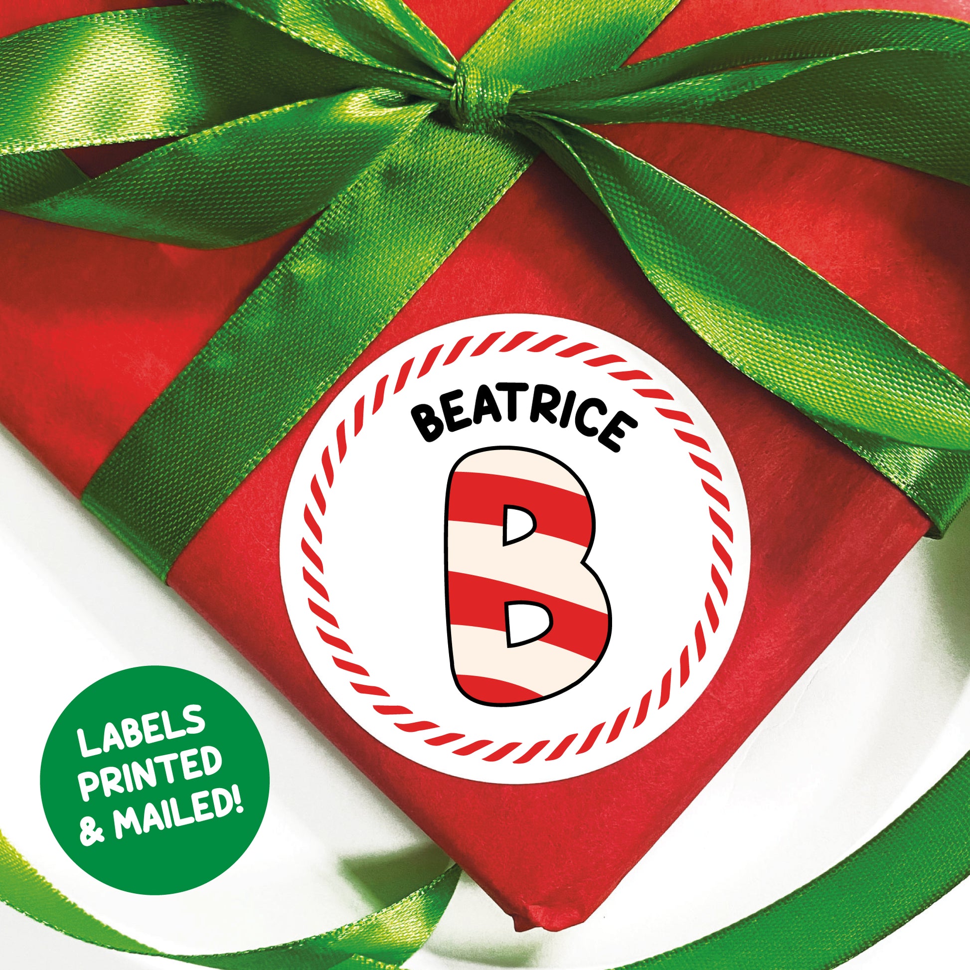 Make holiday gift wrapping stress free with our custom printed Candy Cane Initial labels! Each label comes with a custom printed name, so you won’t have to fill out tags over and over again—just peel and stick!