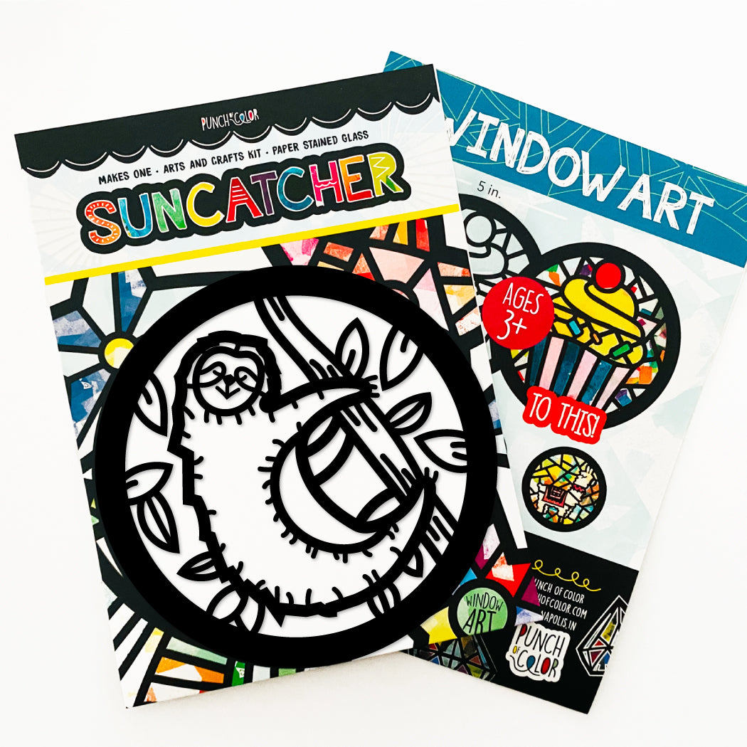 Make your own sloth themed artpiece with this Suncatcher Crafts Kit! Perfect for kids' activities, party favors, and more, this kit has everything you need to enjoy your love of unique animals. Plus, it's sure to put a bright smile on the face of any budding little artist! The suncatchers are created on black cardstock, and each measures approximately 5 inches around.