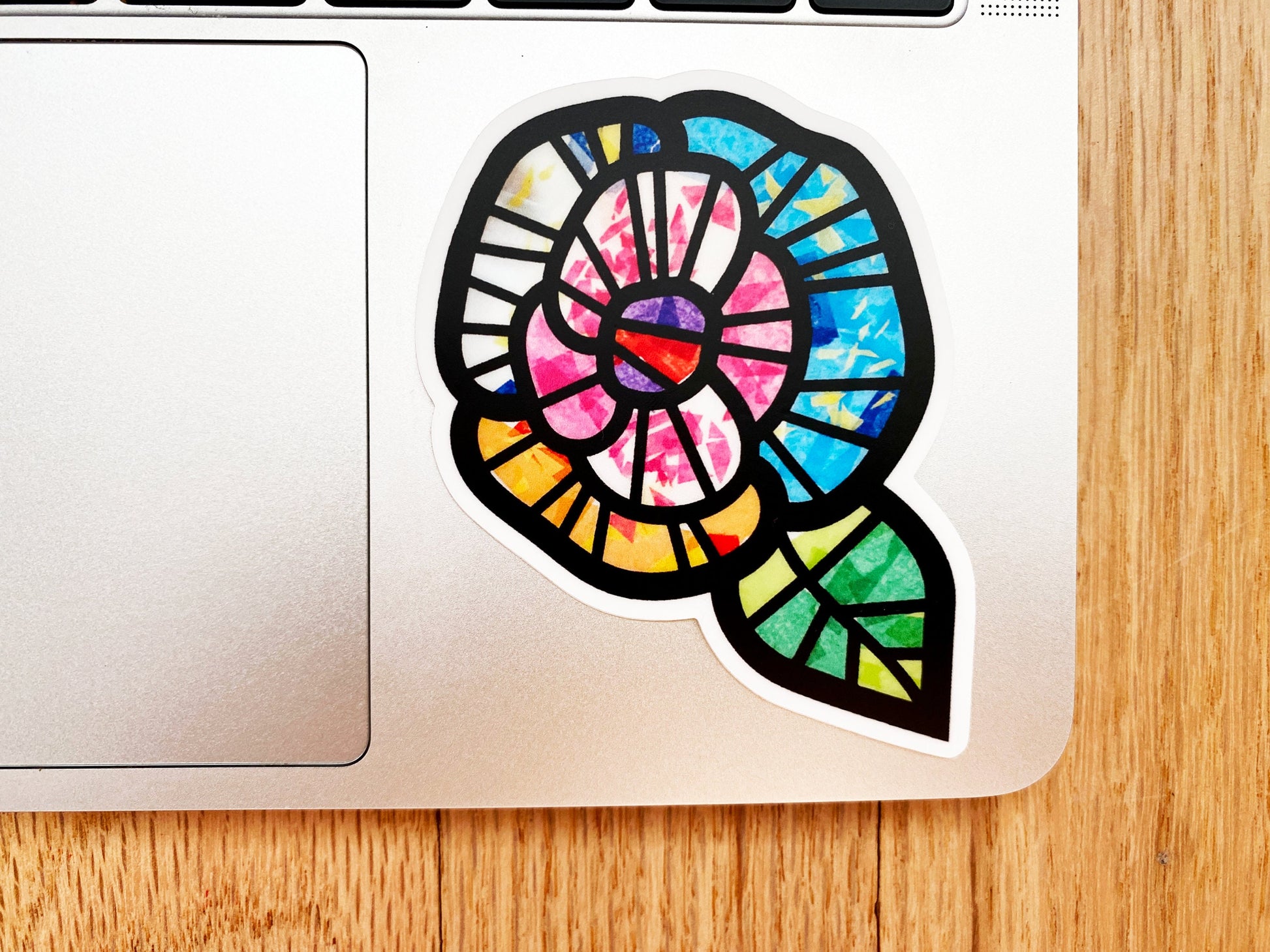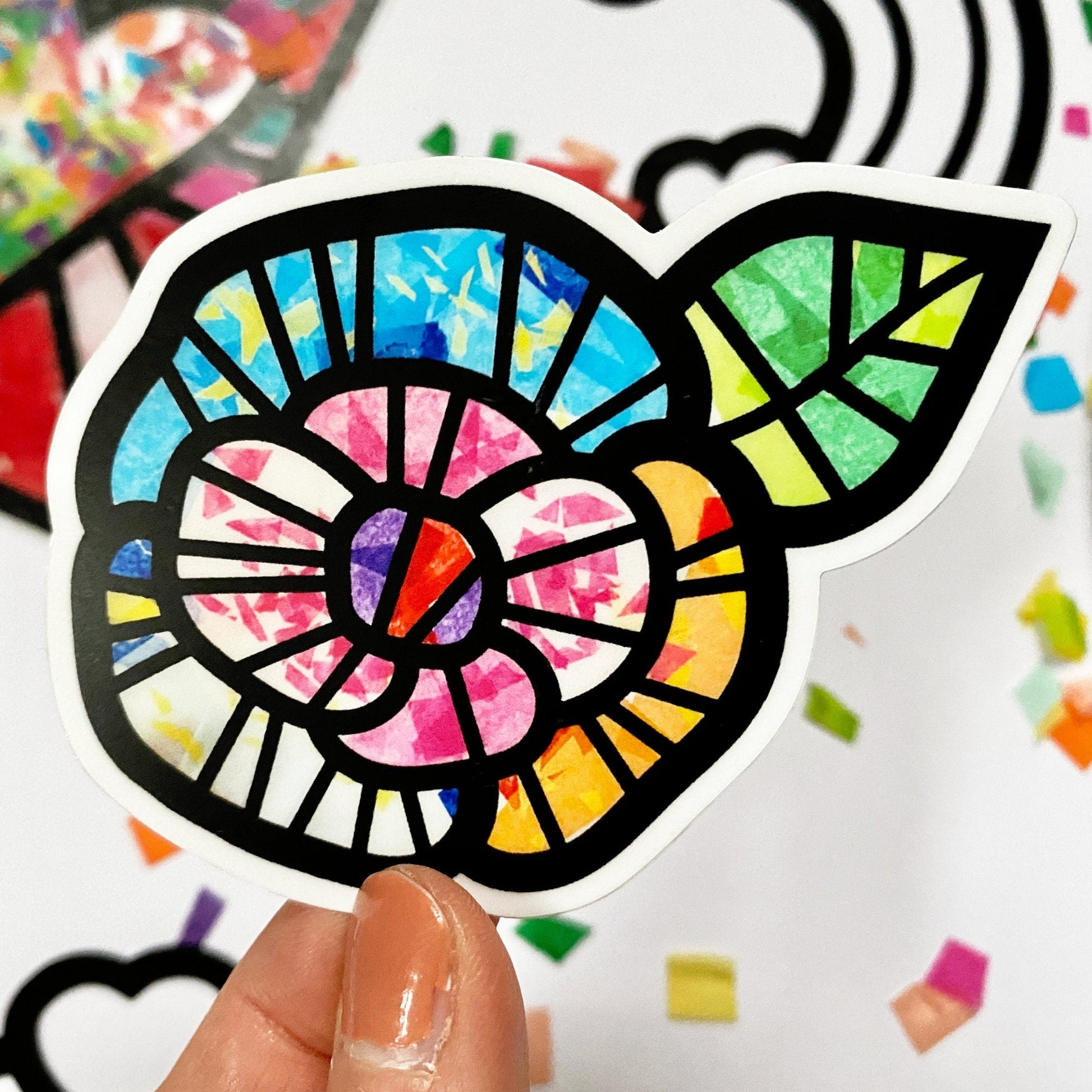This colorful stained glass sticker is a one-of-a-kind design to brighten your laptop, water bottle, etc.! Stickers are designed from our popular paper-stained glass craft kits. These vibrant stickers are a fun kids' party favor addition to add to your goody bags!