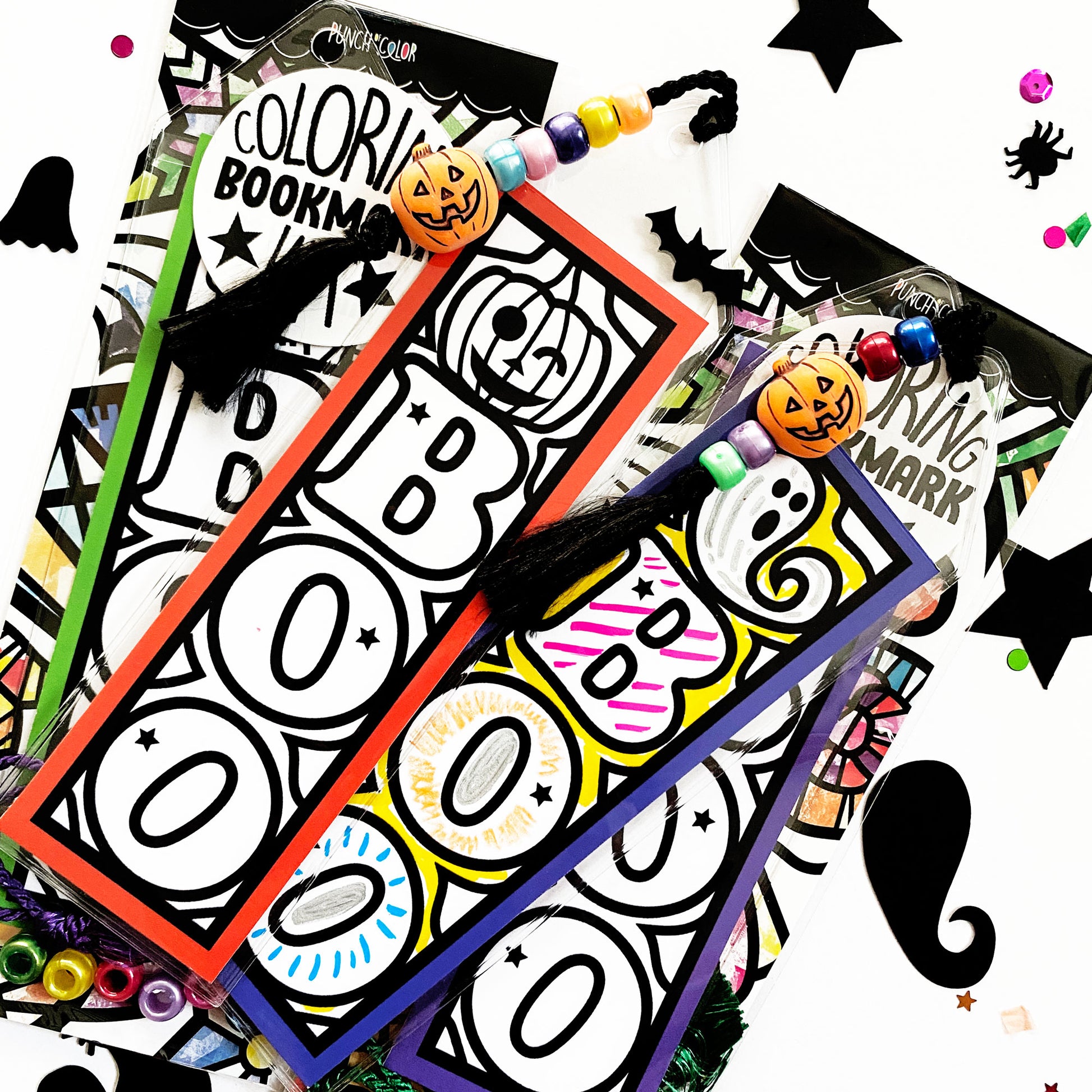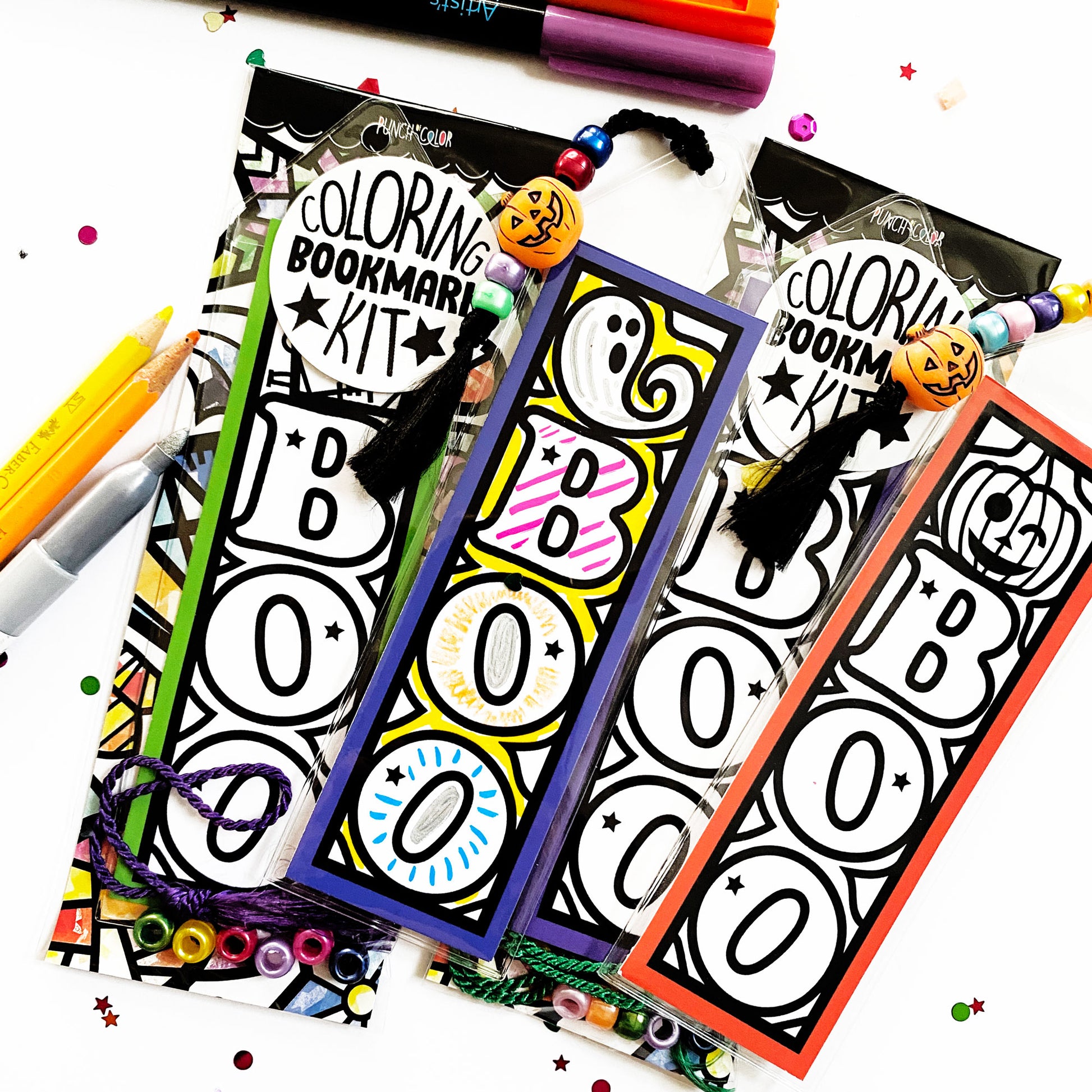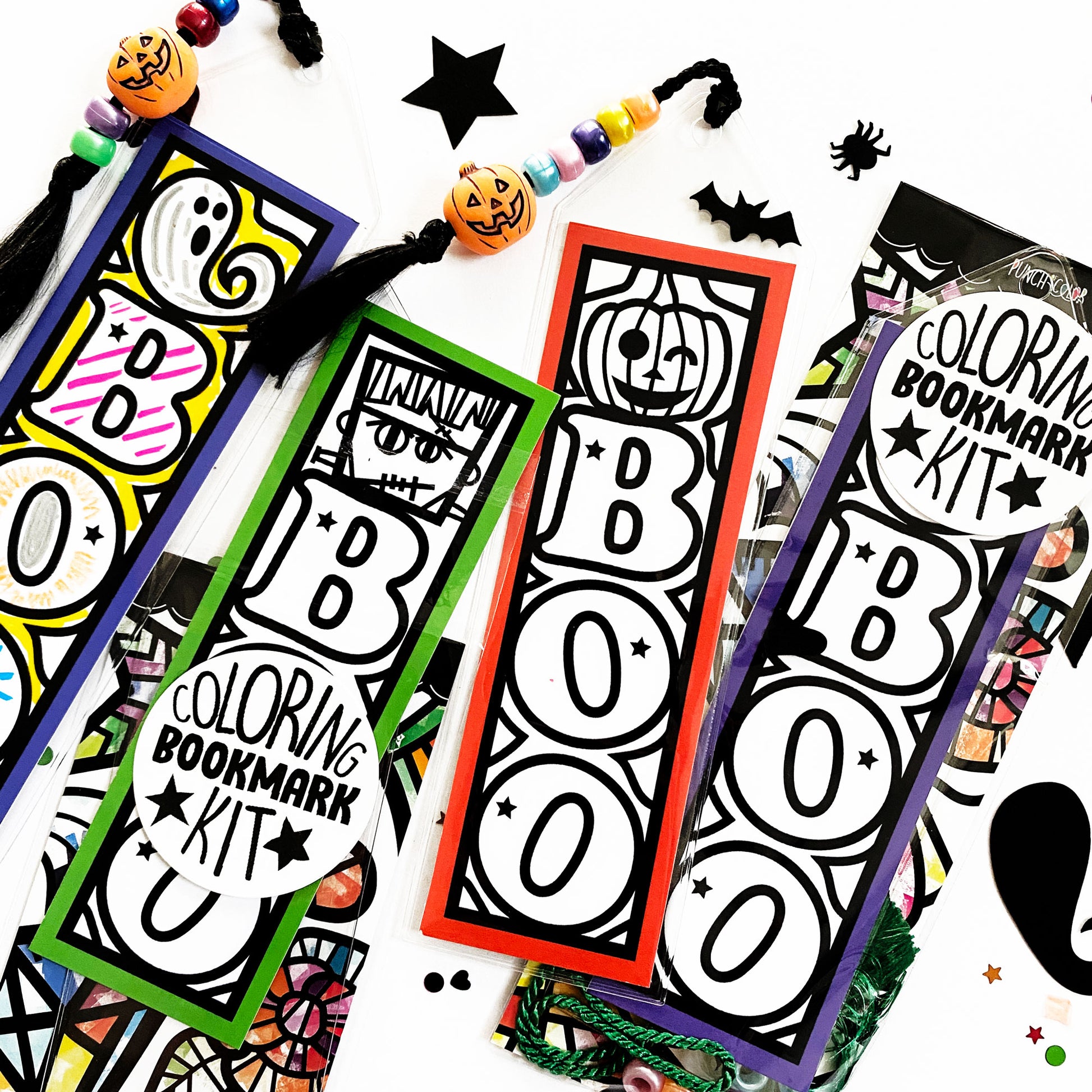 Our bestselling Halloween Coloring Bookmark Kits are perfect party favors, holiday stuffers, and reader gifts! This delightful BOO themed kit comes with a bookmark, metallic beads, vintage pumpkin bead, tassel and protective sleeve. Add this to your boo basket for a crafty addition kids will love!