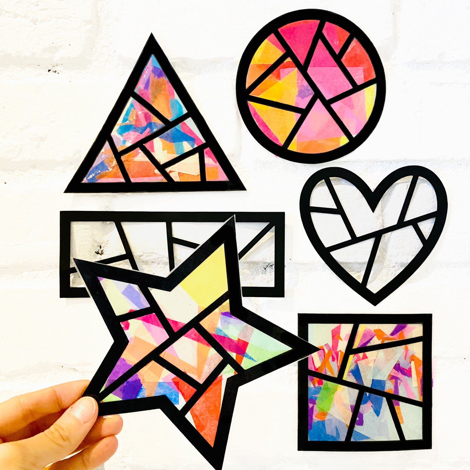 Get ready to learn about shapes with this mess-free arts and crafts kit! Young kids and toddlers will create six colorful, paper "stained glass" suncatchers - no glue is needed! Practice your hand-eye coordination, and when done, you will have created 6 shapes. Decorate your windows with your artwork, and let the light shine through for a beautiful effect. Mess-free crafting perfect for ages 3 and up.
