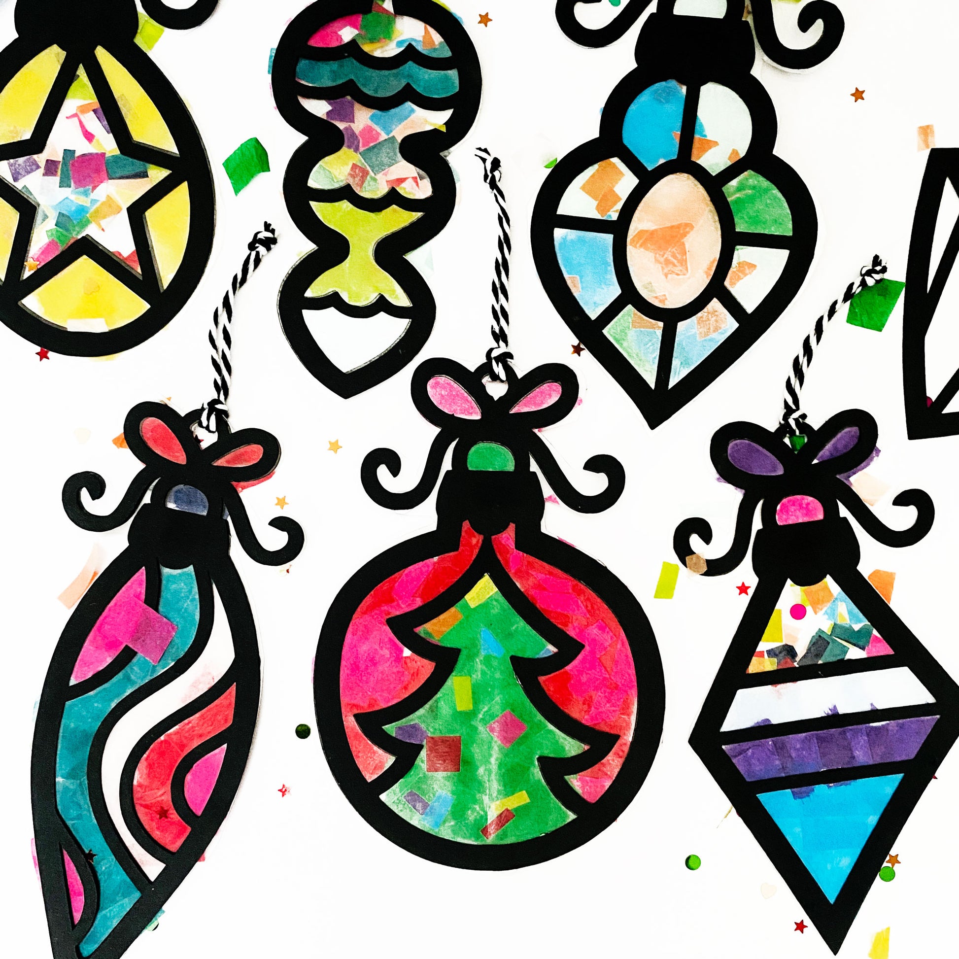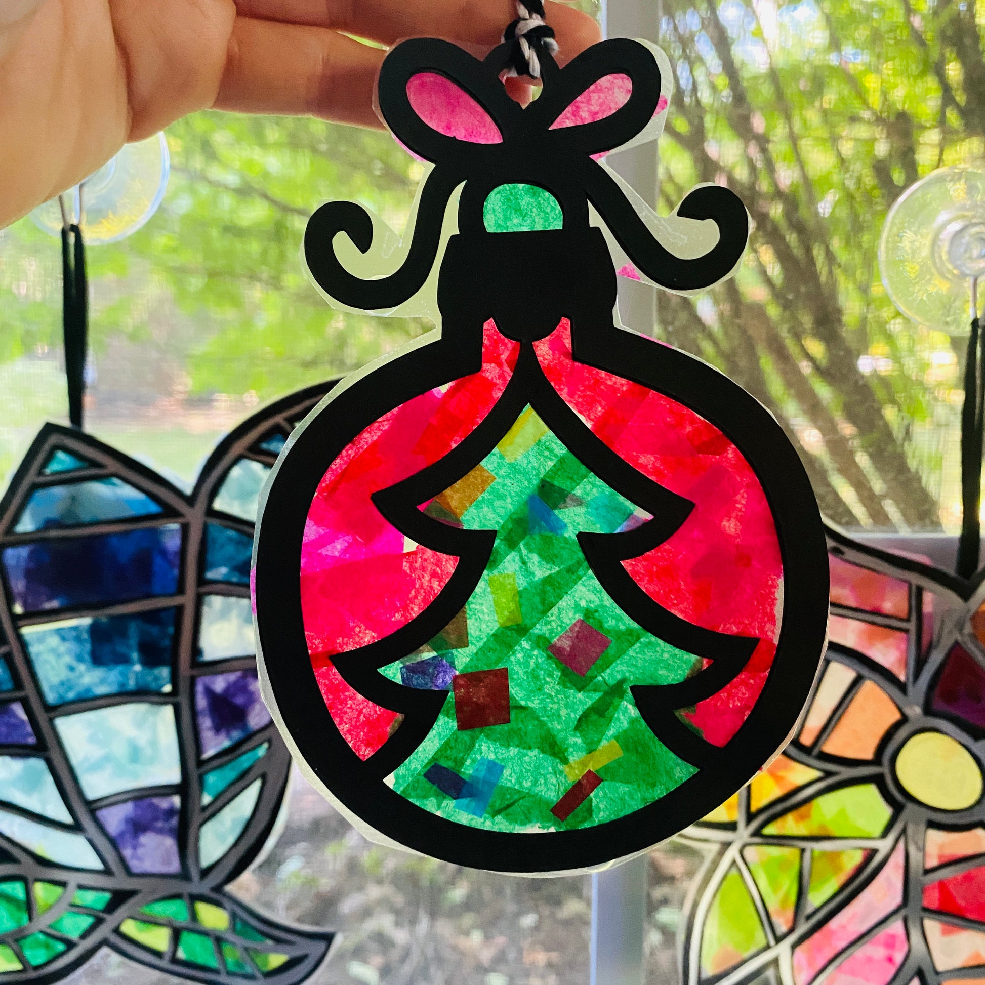 Get your Christmas craft table ready with these easy and mess-free mini suncatcher ornaments. Kids young and old will create seven festive paper "stained glass" suncatchers - no glue is needed! Decorate your windows or tree with your artwork, and let the light shine through for a beautiful effect. Mess-free crafting perfect for ages 3 and up.