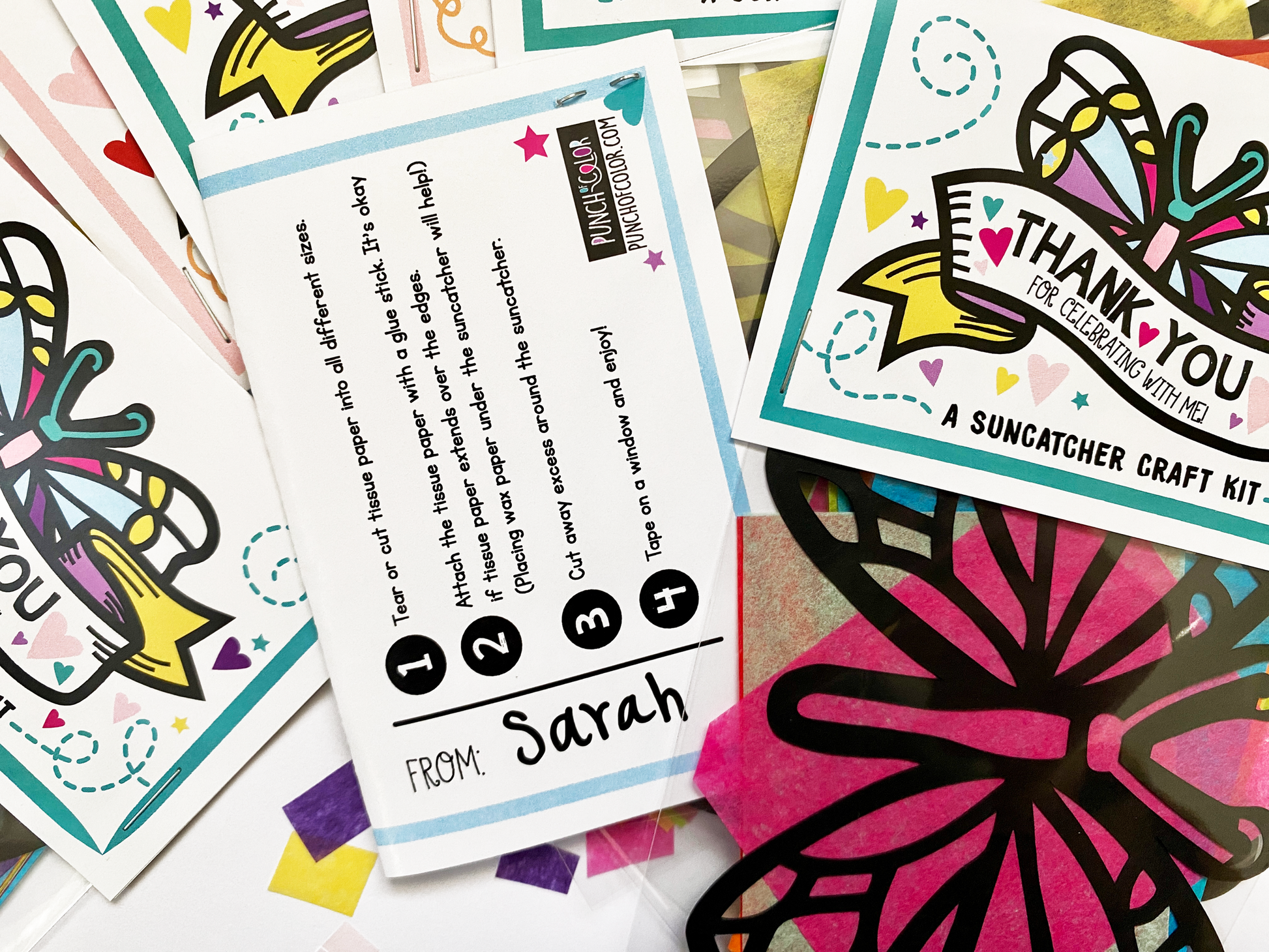 Are you planning an owl-themed birthday party and need a unique favor? Send kiddos home with this simple craft kit and they will be able to create a colorful owl to place on their window.