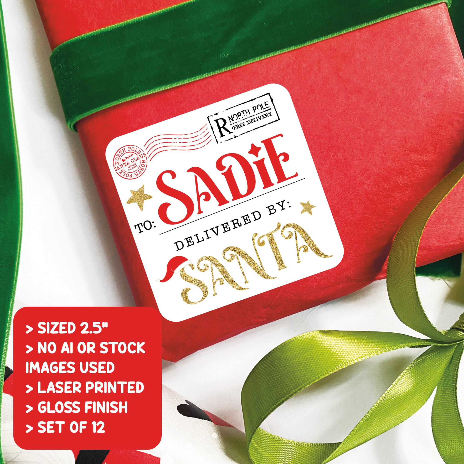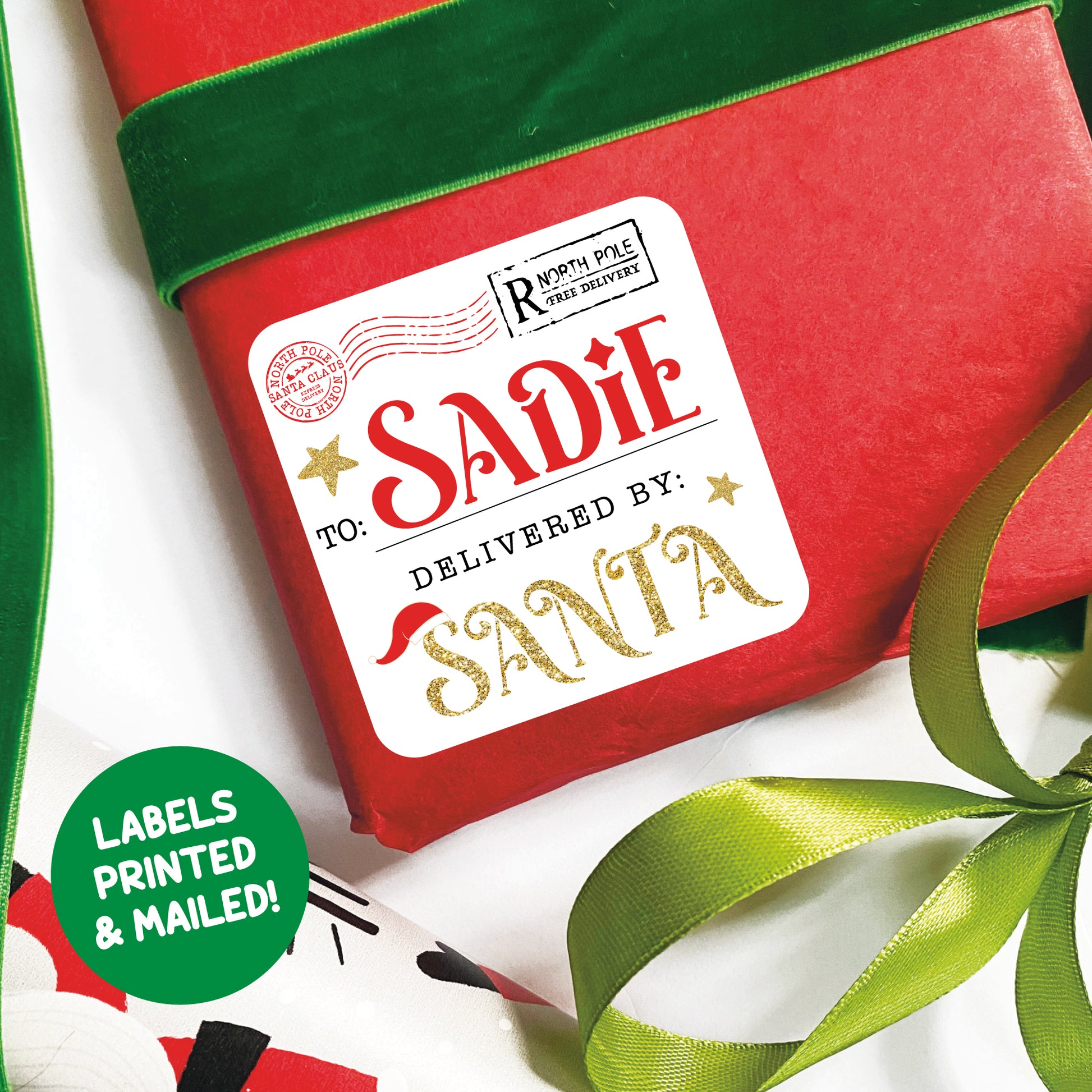 Make holiday gift-giving easier with our custom printed "delivered by Santa" Christmas gift stickers! Each label comes with a custom printed name, so you won’t have to fill out tags over and over again—just peel and stick!