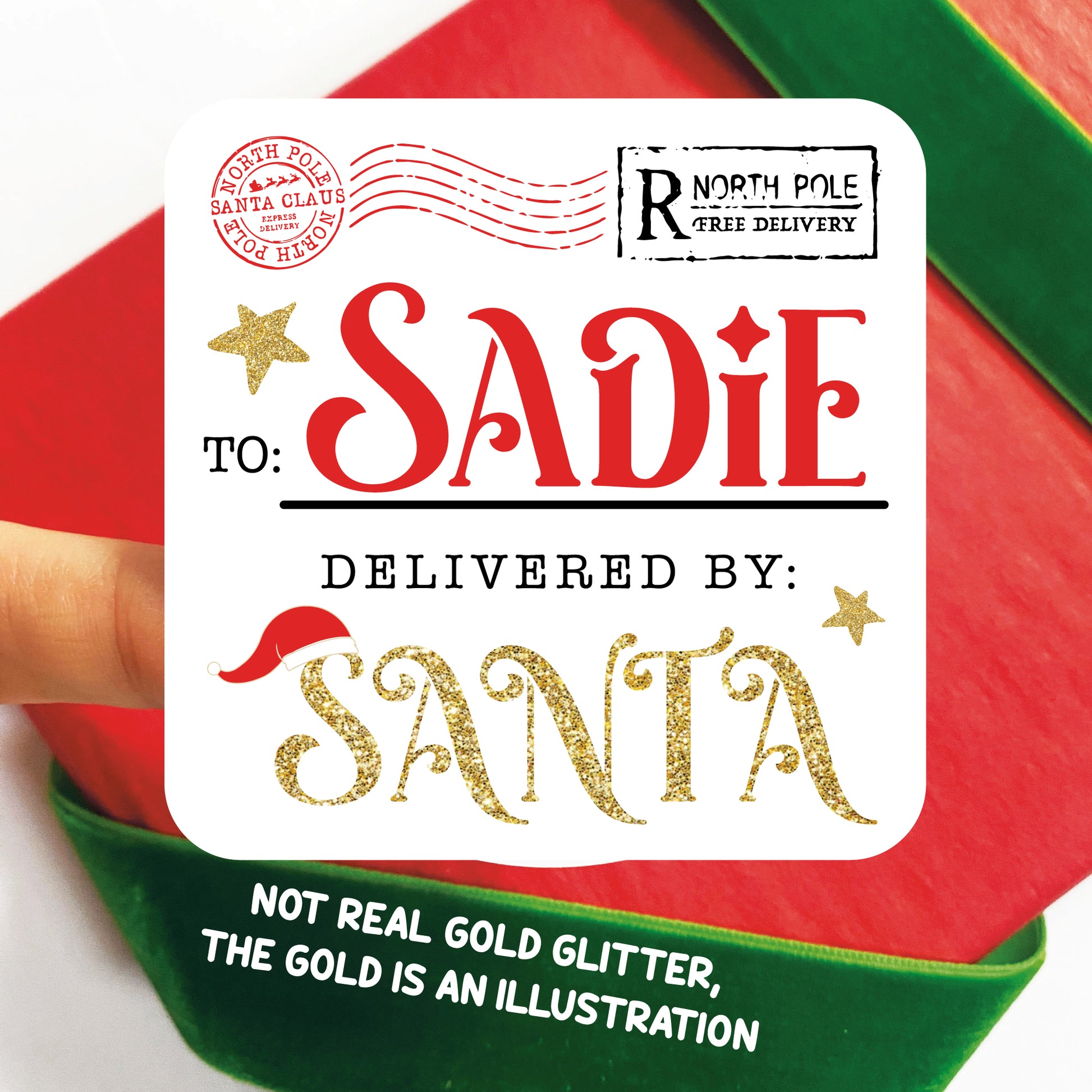 Personalized Christmas Gift Labels - Glitter Gold Santa