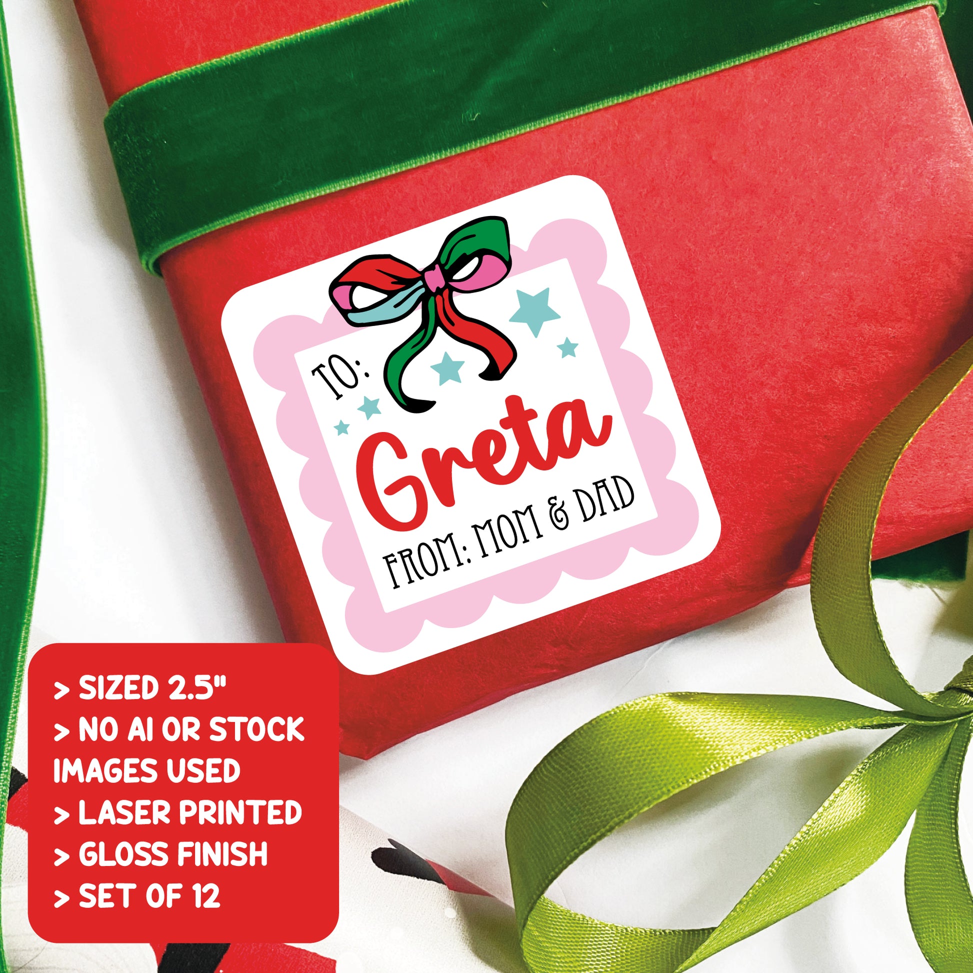 Make holiday gift-giving easier with our custom printed vintage gift themed Christmas gift stickers! Each label comes with a custom printed name, so you won’t have to fill out tags over and over again—just peel and stick!