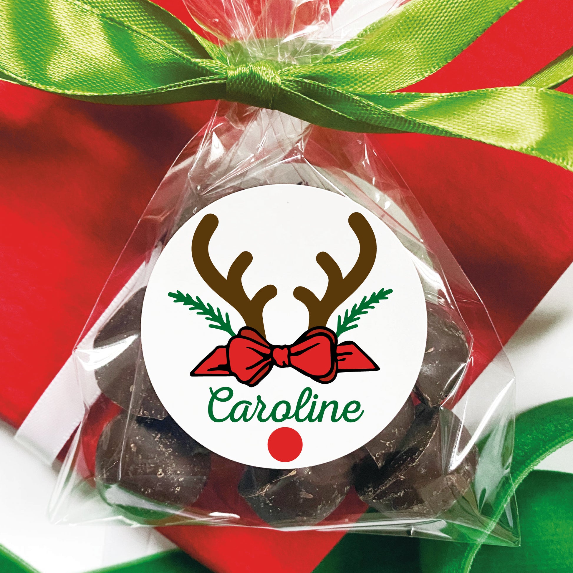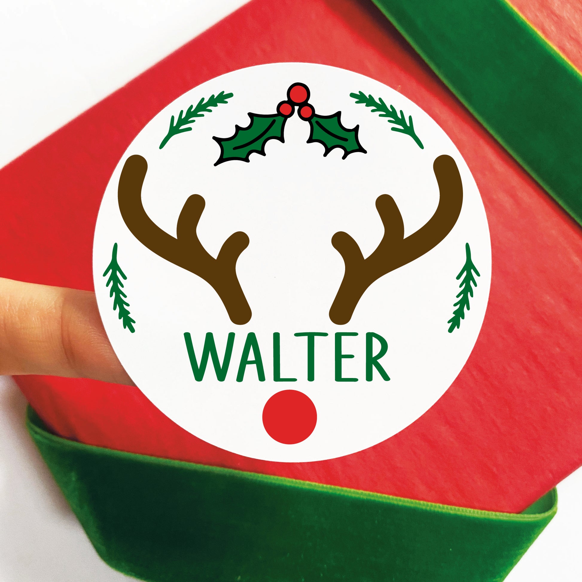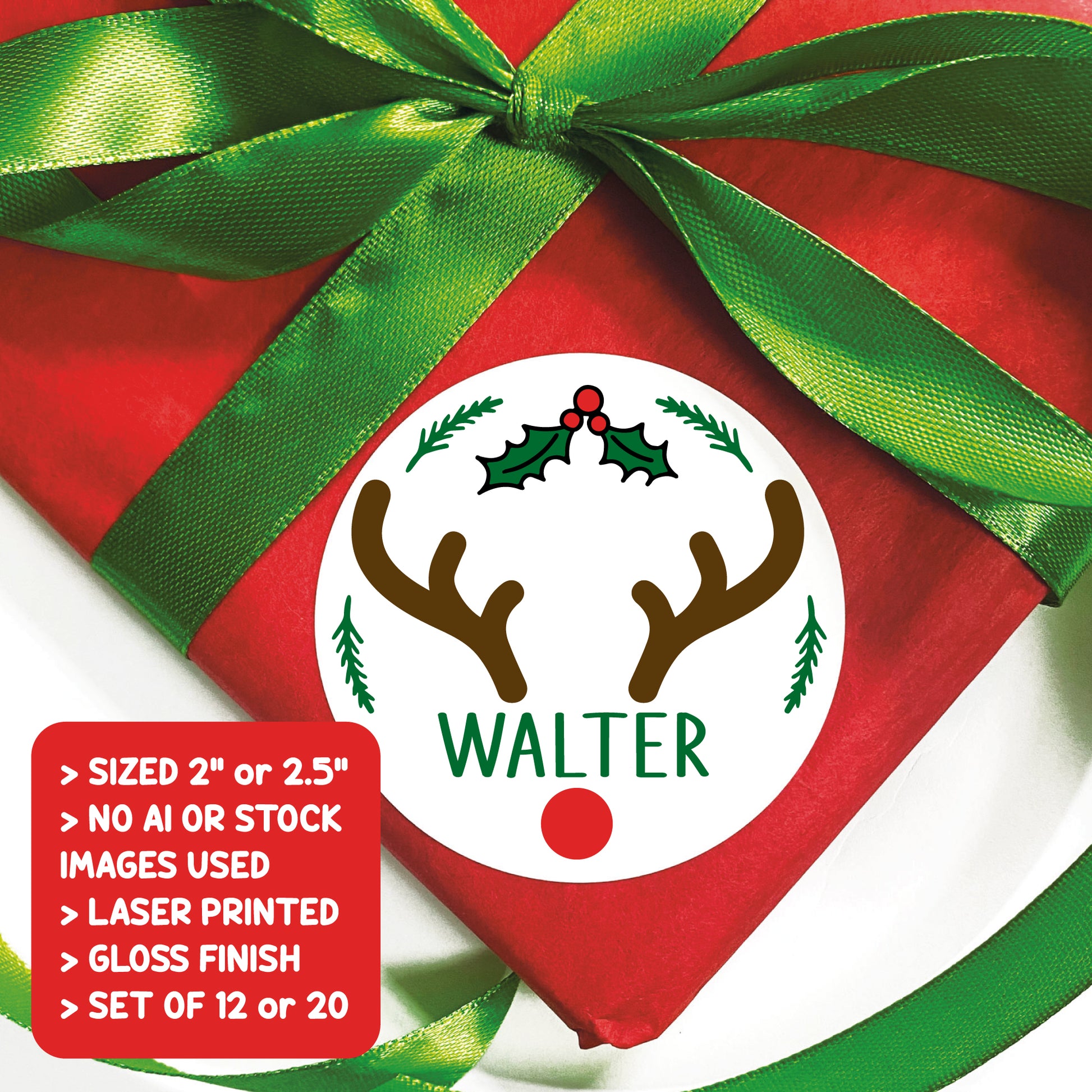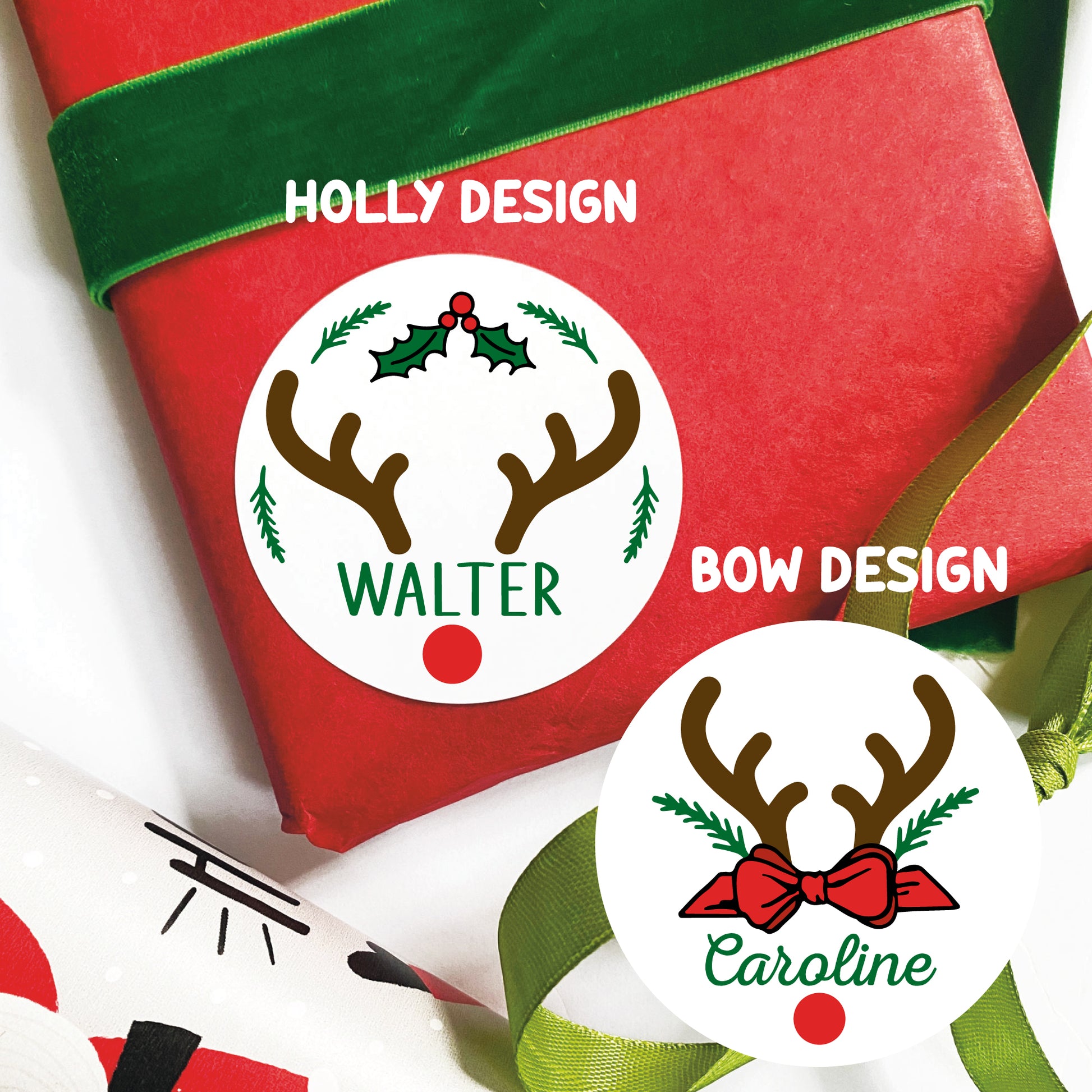 Make holiday gift-giving easier with our custom printed Reindeer Christmas gift stickers! Each label comes with a custom printed name, so you won’t have to fill out tags over and over again—just peel and stick!