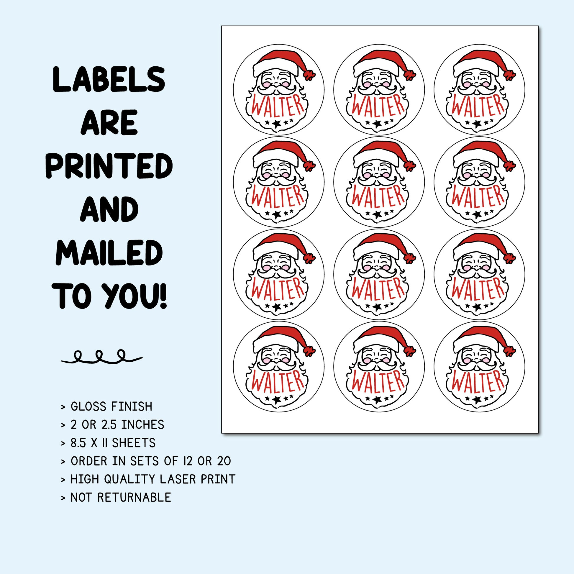 Make holiday gift-giving easier with our custom printed Santa Claus Christmas gift stickers! Each label comes with a custom printed name, so you won’t have to fill out tags over and over again—just peel and stick!