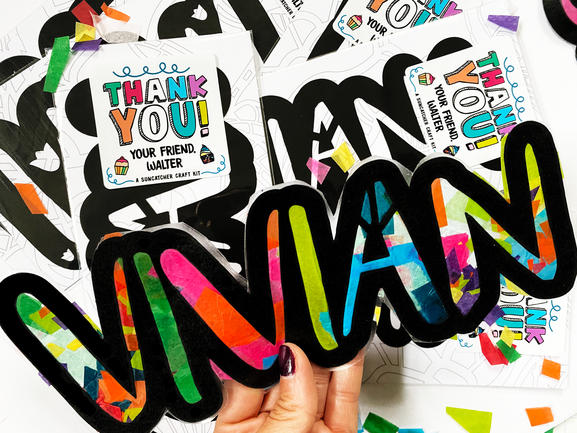 This listing is for a personalized sun catcher craft kit! Perfect for party favors, holiday stuffers, or an artsy gift! Each kit comes with the name of the kiddo custom made into a suncatcher, tissue paper, contact paper and detailed directions.