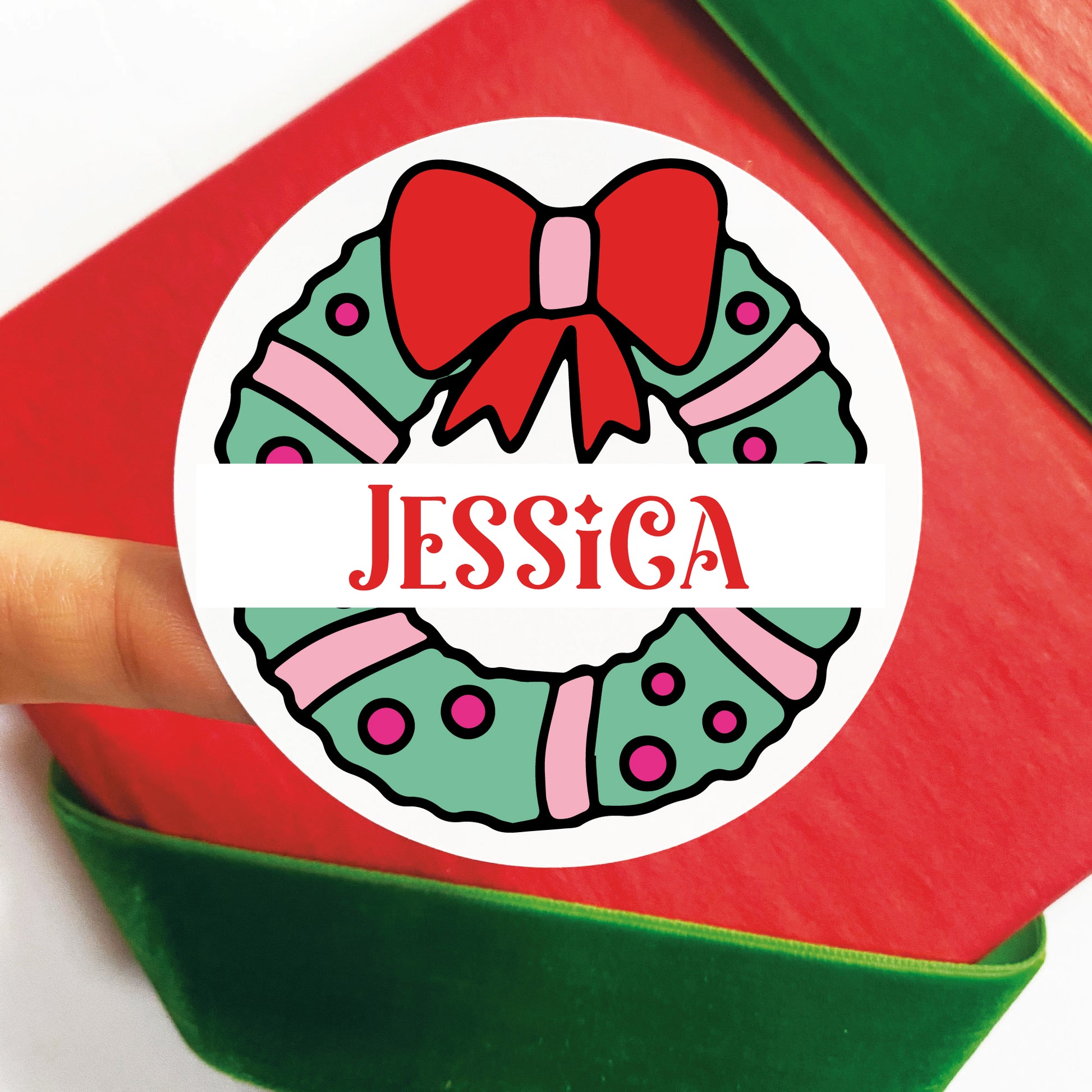 Personalized Vintage Wreath Christmas Gift Labels