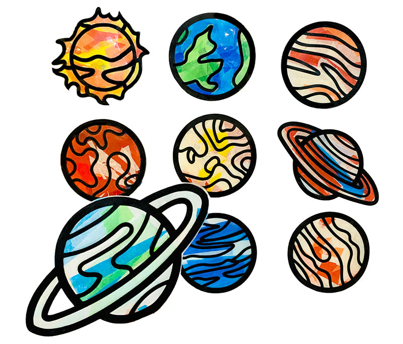 Looking for the perfect outer space kids craft kit, party favor or toddler activity? Introducing our Planets Suncatcher Arts and Crafts Kit - a mess-free (no glue!) creative experience for kids young and old. The kit includes outer space themed cutouts colorful tissue paper, and contact paper for easy crafting of beautiful suncatchers. Once completed simply tape on the window and enjoy watching the sun light up your designs. Perfect for ages 3 and up!