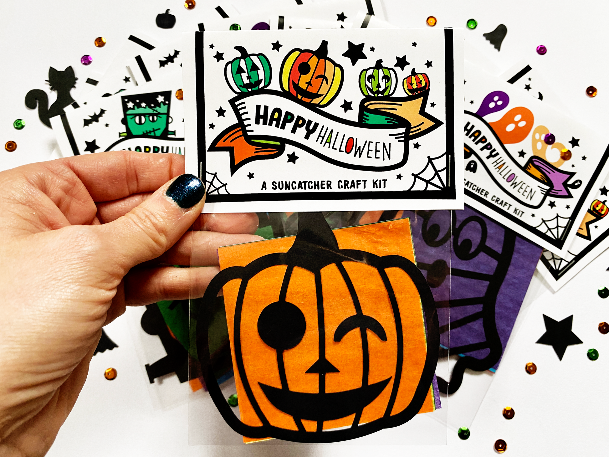 Our paper suncatcher pumpkin kits make the best Halloween party favors for kids and toddlers! These paper craft kits are also the perfect addition to your spooky boo baskets, fall party table, or trick or treat events. When finished, the recipient will have an adorable ghost suncatcher to place on their window. These kits are 4 inches wide by approximately 8 inches tall when assembled.