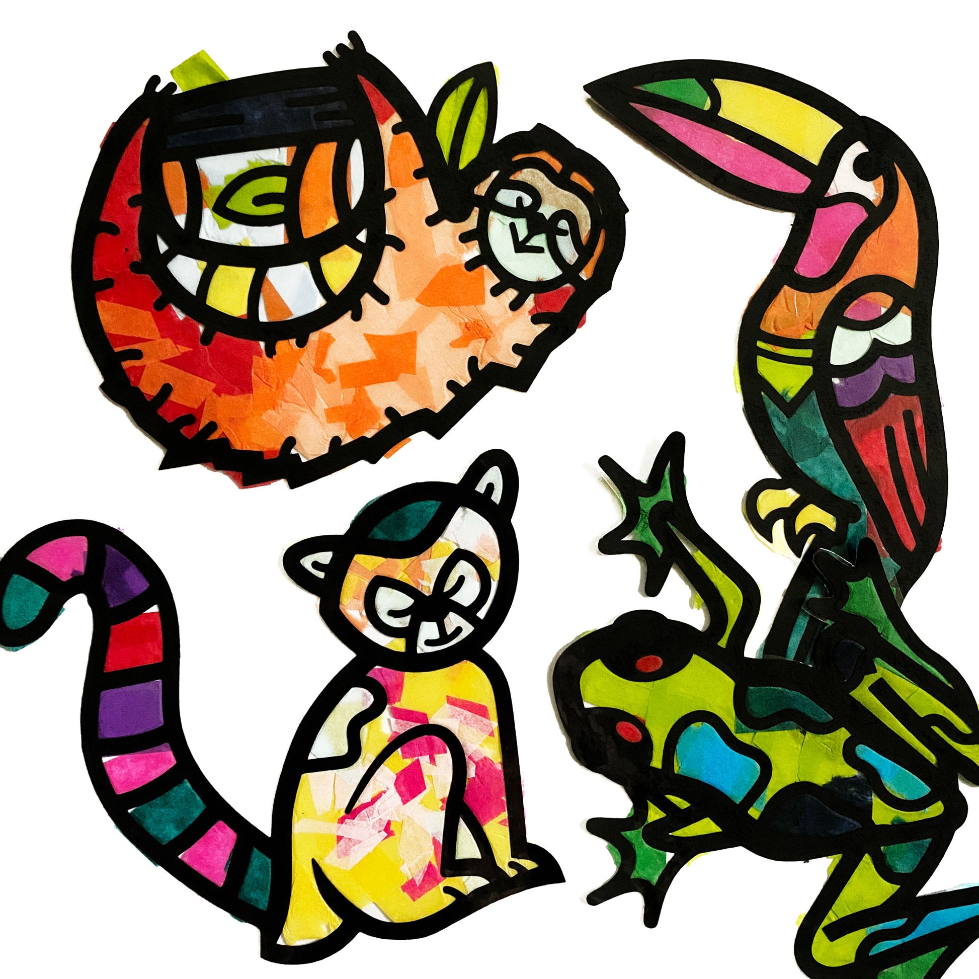 Spark your child's creativity with our Rainforest animals Suncatcher Kit! With pre-cut paper suncatchers, vibrant tissue paper, and easy-to-follow instructions, kids will create 1 sloth, 1 lemur, 1 toucan and 1 poison dart frog. When finished, tape your artwork to your window and enjoy watching the light shine through. The best part...no glue is needed!
