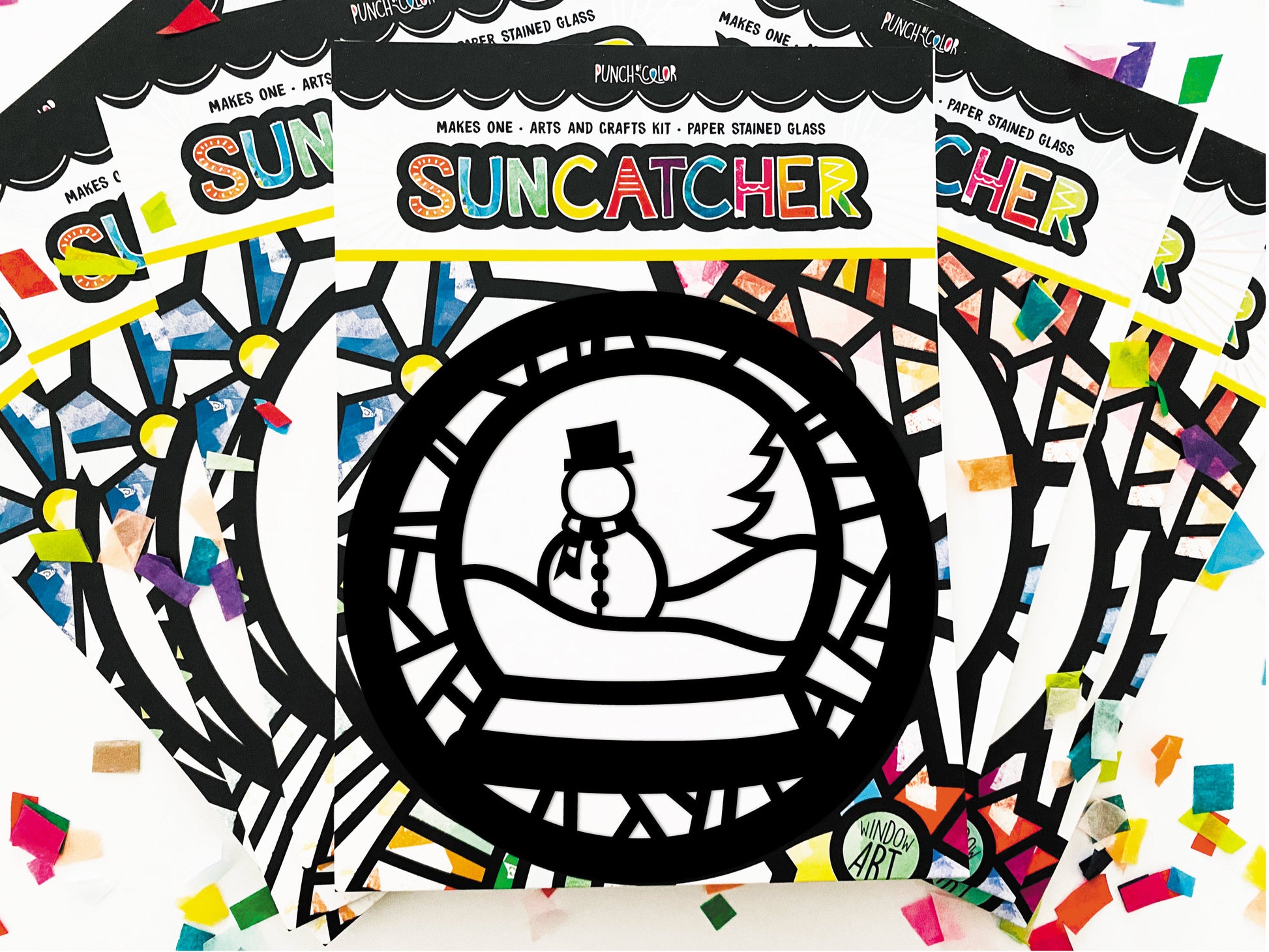 Hosting a Christmas or Winter holiday party and needing a simple, mess-free craft for the kids? These paper snowman snowglobe suncatcher crafts are the perfect activity for toddlers and older children. Kiddos will easily be able to create colorful suncatchers with the materials included - hang them in front of your window when done for a beautiful effect! The suncatchers are created on black cardstock, and each measures approximately 5 inches around.